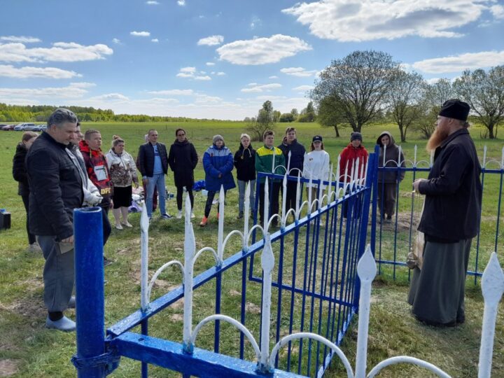 Юные прихожане сафоновского храма ухаживают за могилой подростков-партизан