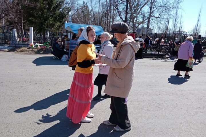 Волонтеры курганских храмов раздали посетителям кладбища просветительские листовки