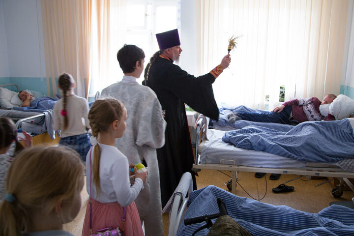 Юные прихожане хабаровского храма прошли Крестным ходом по палатам военного госпиталя