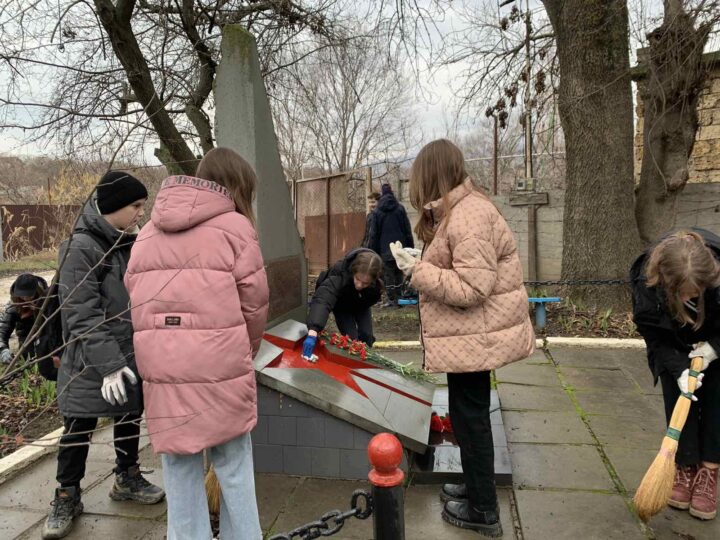 Юные прихожане крымского храма облагородили памятник погибшим семьям партизан