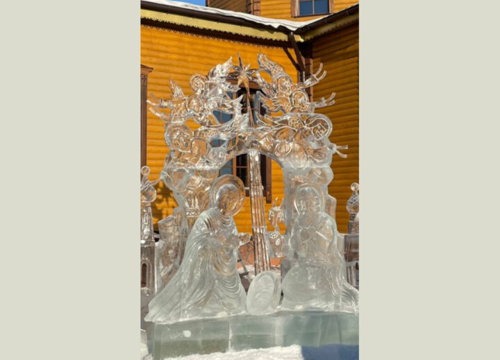 Ледовую скульптуру Рождества Христова установили рядом с храмом в Приамурье