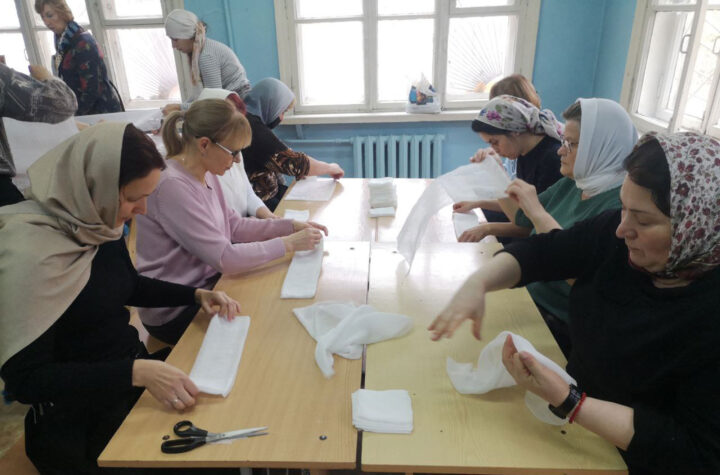 Хирургические салфетки для госпиталей Донбасса делают подмосковные приходы