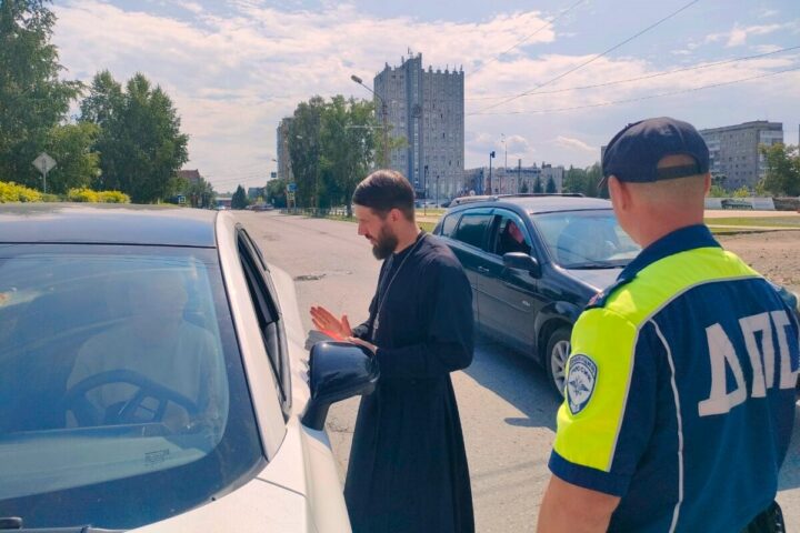 Священник и инспекторы ДПС призвали ачинских водителей к осторожности на дорогах