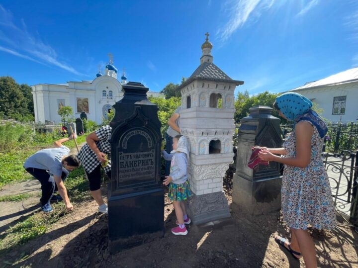 Юные прихожане сельского храма помогают ухаживать за могилами меценатов