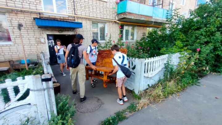 Воспитанники столярного кружка при татарстанском храме принимают участие в благоустройстве дворов
