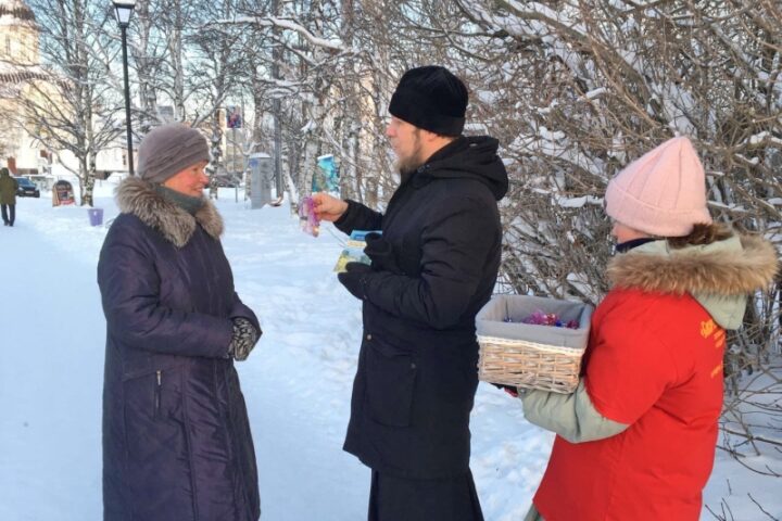 Архангельский священник раздал горожанам шоколадные монетки в память о святителе Николае