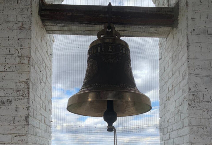 Полутонный благовест подняли на тридцатиметровую звонницу сельского храма
