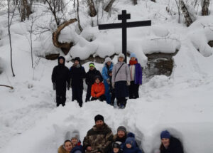 Священник сводил молодых прихожан в поход к поклонному кресту