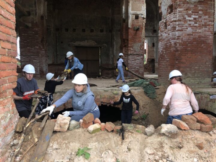 Молодежь приводит в порядок разрушенный храм под Санкт-Петербургом