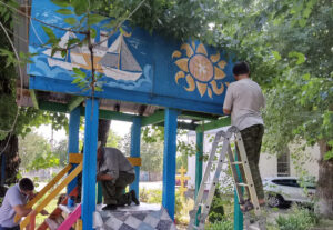 Кубанская молодежь обновила прихрамовую детскую площадку