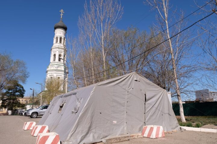 Литургию в палатке на месте разрушенного храма совершили в Астрахани