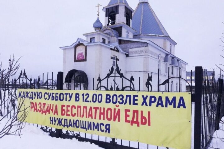 Прихожане архангельского храма раздают еду нуждающимся