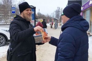 Мешочки с шоколадными монетами раздал на улице архангельский священник