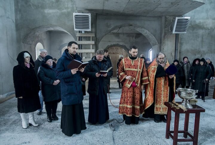 Совершено первое богослужение в строящемся храме под Кемерово