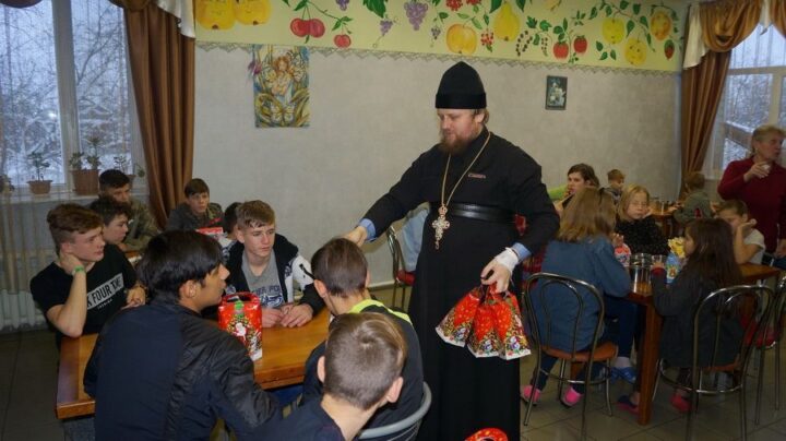 Братия Киево-Печерской лавры привезла детям из реабилитационного центра новогодние подарки
