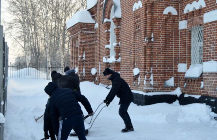 Учащиеся тайгинского железнодорожного техникума очистили территорию храма от снега
