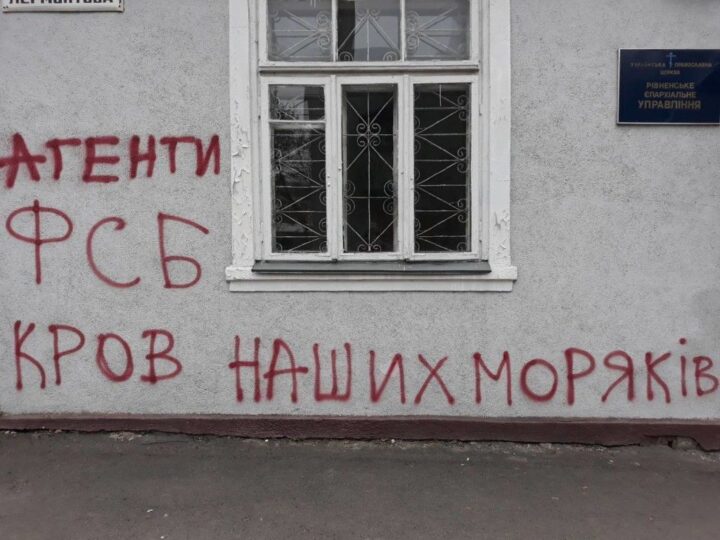 Украинские радикалы исписали здание Ровенской епархии после инцидента в Керчи