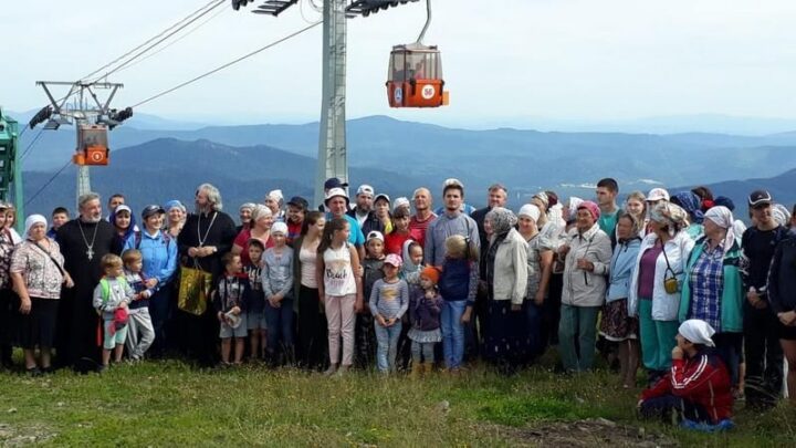 Прихожане Кемеровской области совершили крестный ход на местную гору, часть пути они проделали на подъемнике