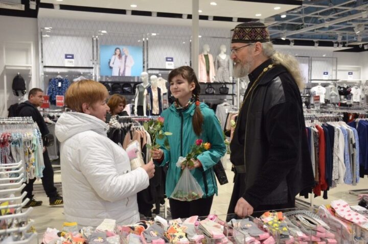 В день Жен-мироносиц прихожане храмов в Великих Луках дарили женщинам цветы