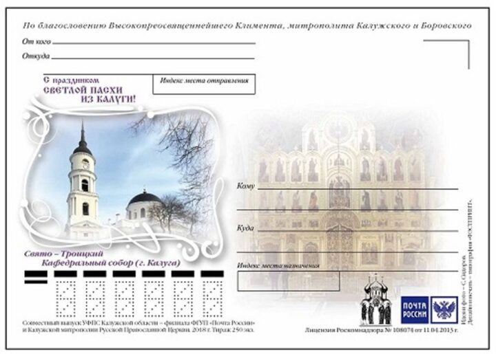 Калужский священник принял участие в гашении почтовых карточек, посвященных Пасхе