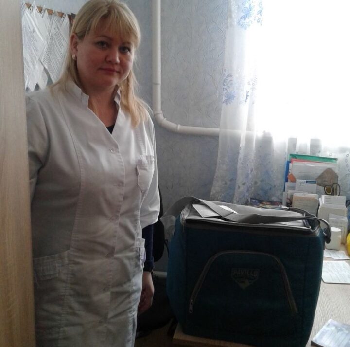 Запорожский священник подарил клинике сумку-холодильник для перевозки вакцин