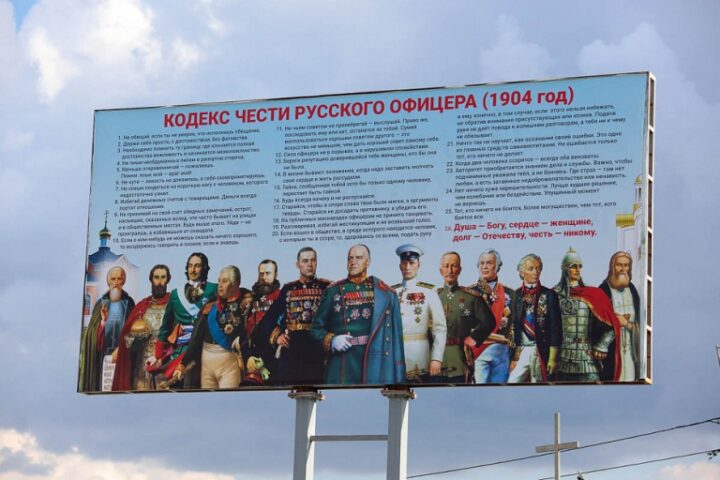 На территории Свято-Троицкого собора Кургана установлен рекламный щит патриотического содержания