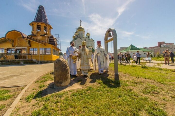 На предполагаемом месте крещения Патриарха Пимена освятили поклонный крест