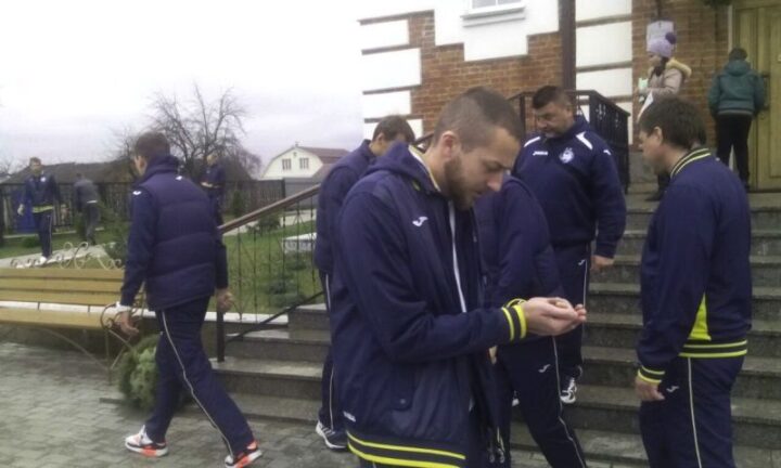 «Футбольный» газон вокруг храма посеяли игроки известной команды
