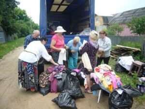 Добровольцы привезли нуждающимся жителям деревень одежду, иконы и книги