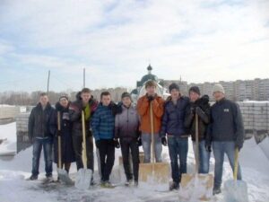 В Липецке студенты техникума после рекордного снегопада помогли расчистить место строительства Сергиевского храма