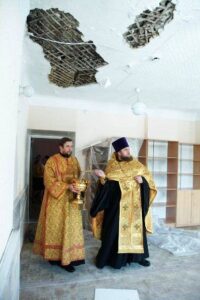 Челябинский священник освятил школу, пострадавшую при падении метеорита