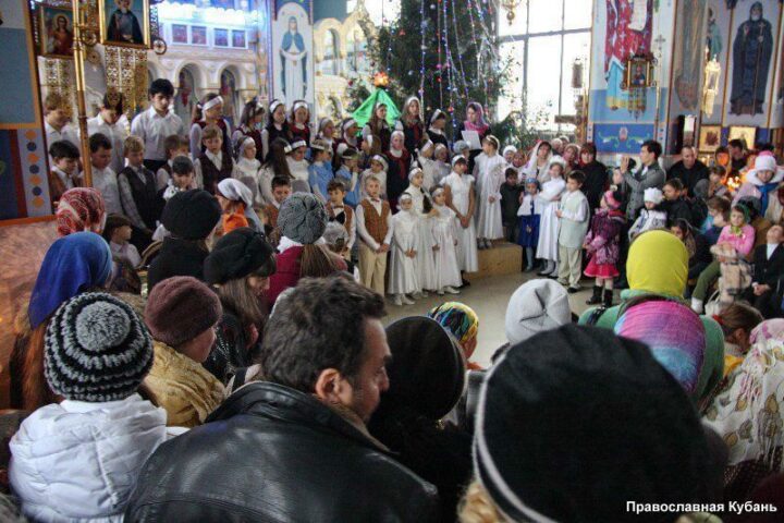 Пострадавшие от наводнения семьи Крымска были приглашены на Рождественскую елку, которая прошла в Михаило-Архангельском храме города