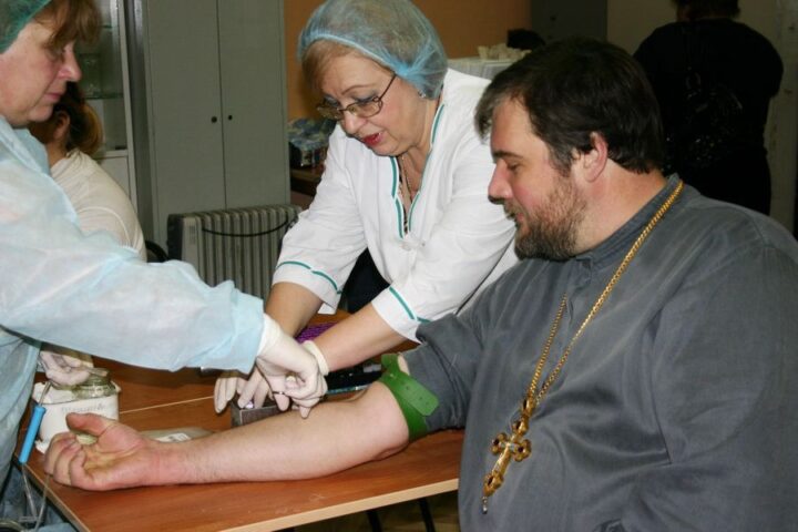 Священник показал пример прихожанам, первым сдав кровь в рамках акции помощи больным детям