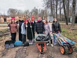 Студенты Вышневолоцкого колледжа помогли монастырю в уборке территории