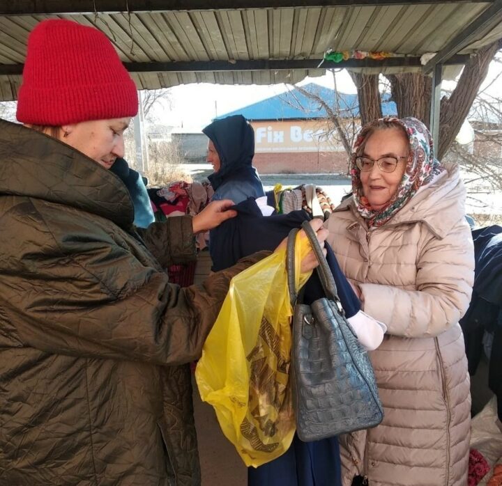 Сотрудники гуманитарного приходского склада в Чите раздали одежду нуждающимся прямо на улице