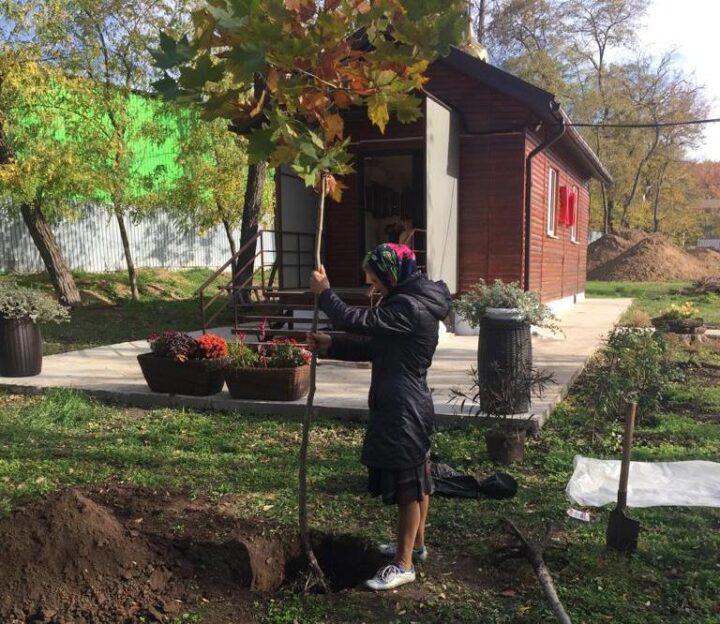 Деревья платана и многолетние цветы высадили на территории ростовского храма ко Дню древонасаждения