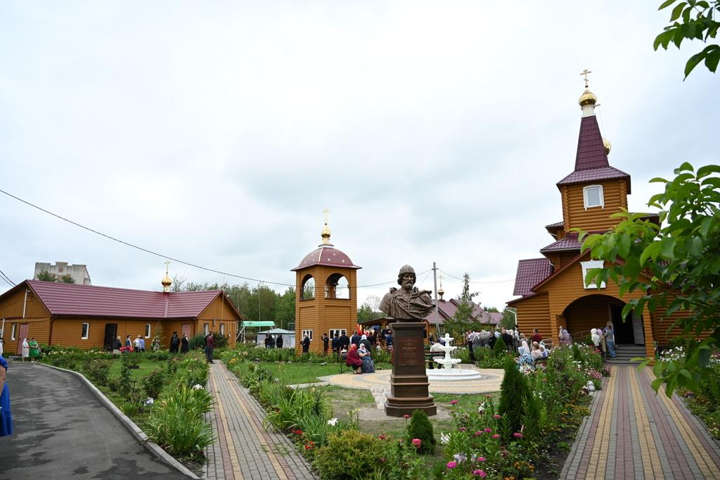 Трехметровый бронзовый бюст с постаментом изготовлен в рамках проекта «Аллея российской славы». Трудами настоятеля и благодетелей монумент был доставлен из Краснодарского края в Брянск и установлен на церковной территории. Этим памятником завершился архитектурный ансамбль деревянного храмового комплекса. Посередине возвышаются два храма: основной во имя равноапостольного великого князя Владимира и летний во имя равноапостольной великой княгини Ольги. На территории расположены колокольня, церковно-приходской дом, белоснежный фонтан, деревянный колодец, детская и спортивная площадки. К престольному торжеству храмы и церковные строения были покрашены в единый цвет, и теперь храмовый комплекс предстает в одном стиле.