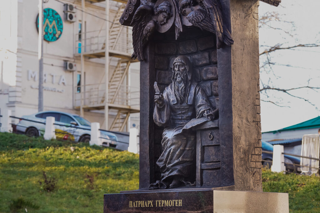 Приходы.ру 10.11.2023. 4 ноября, в праздник Казанской иконы Божией Матери и День народного единства, в Нижнем Новгороде состоялось открытие памятника Патриарху Московскому и всея Руси Гермогену. Монумент установлен на площади Народного Единства напротив Казанского храма города.