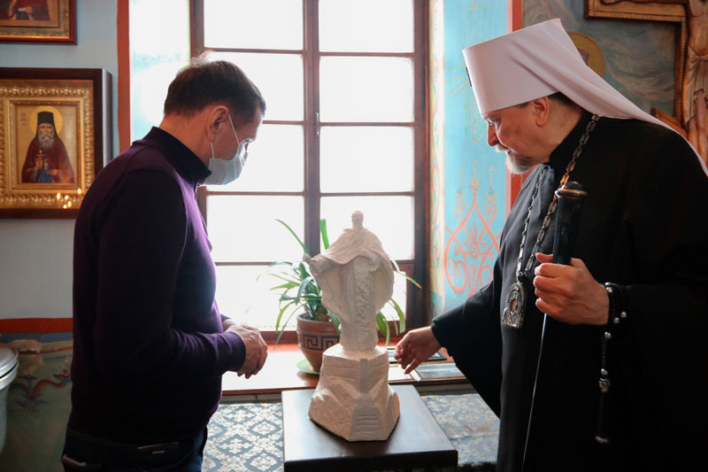 Приходы.ру. 16.03.2022. 11 марта митрополит Мурманский и Мончегорский Митрофан передал главе администрации Кольского района Александру Лихолату макет памятника великому северному подвижнику XVI века, крестителю лопарей преподобному Феодориту Кольскому. Сейчас этот макет находится в Благовещенском храме Колы, увидеть его могут все желающие.