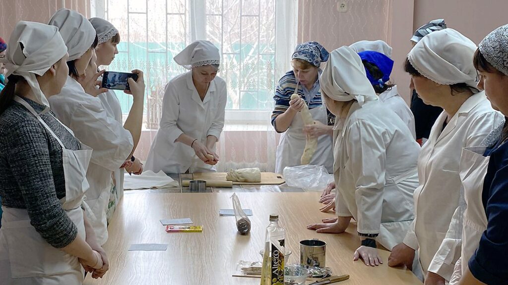 В рамках занятия участники узнали секрет постного вкусного теста и приготовили выпечку двумя способами — легким для малышей и посложнее для старших детей. Готовые образцы воспитатели взяли с собой, чтобы в свою очередь провести кулинарный урок воспитанникам, сообщает сайт Ейской епархии.