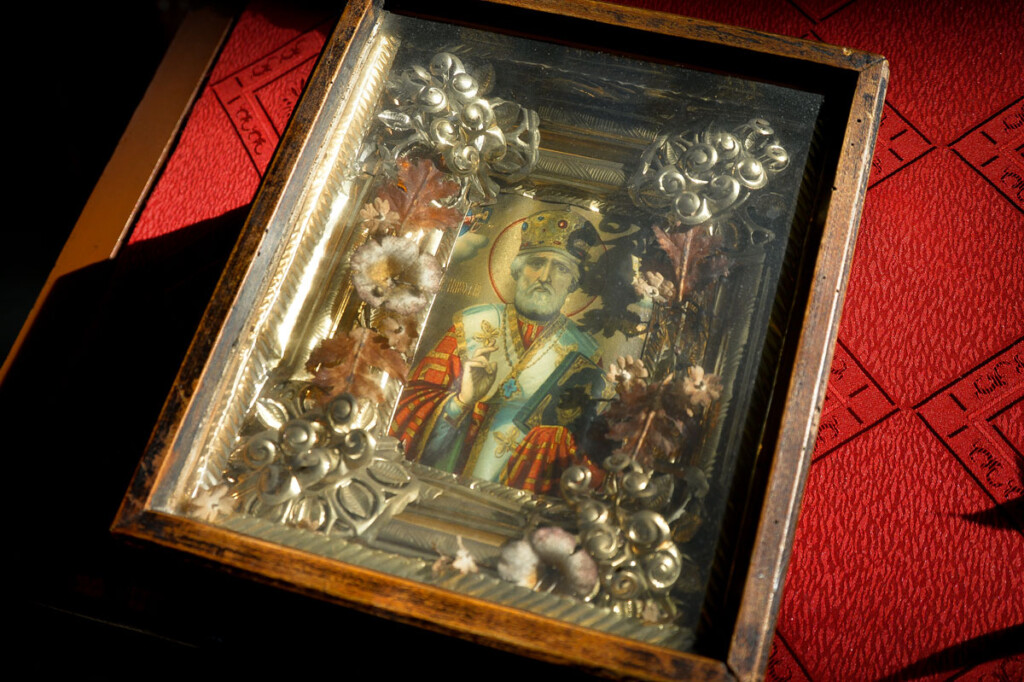 Этот образ святителя Николая Чудотворца в храм Спаса-на-водах несколько лет назад принесла пожилая женщина, сообщает сайт Мурманской епархии. Во время Великой Отечественной войны она служила ротной сестрой милосердия.