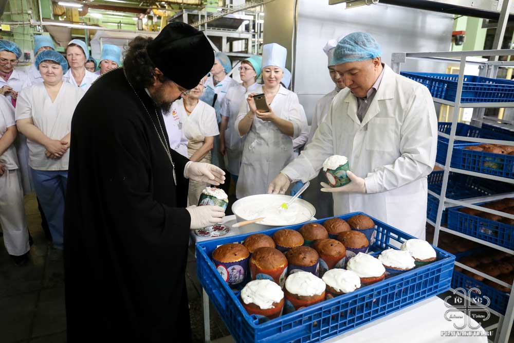11 апреля архиепископ Якутский и Ленский Роман посетил Якутский хлебокомбинат. На предприятии начинается производство пасхальной выпечки, и владыка благословил кондитеров на начало доброго дела.