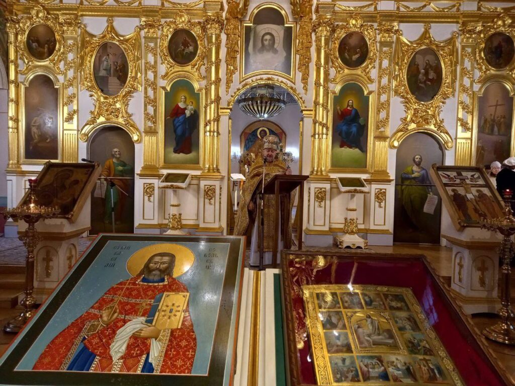 В воскресенье 4 января за Божественной литургией по заамвонной молитве священнослужители вынесли из алтаря новый образ при пении тропаря святому. Настоятель протоиерей Андрей Дьяконов совершил освящение образа и после окропления святой водой прочитал молитву священномученику Василию. Хор вместе с народом пропел величание. Эти богослужебные тексты были утверждены Священным Синодом в 2025 году.