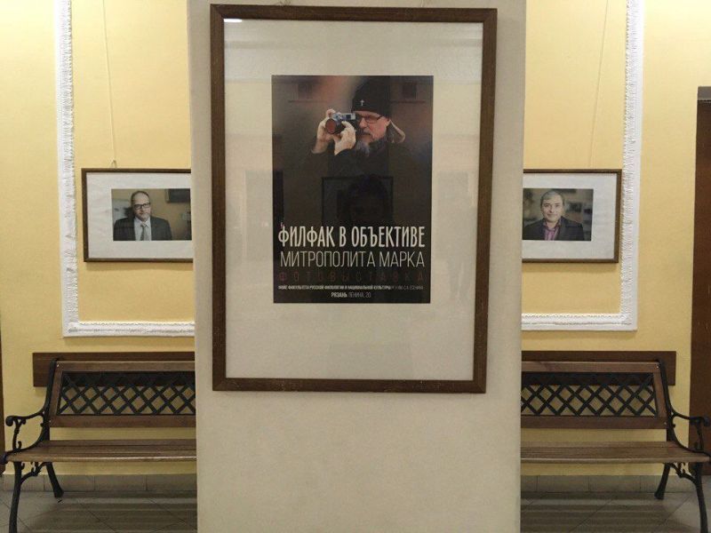 На факультете филологии Рязанского государственного университета открылась фотовыставка работ митрополита Рязанского и Михайловского Марка. Снимки были сделаны недавно, этой весной, а запечатлены на них преподаватели и студенты факультета.