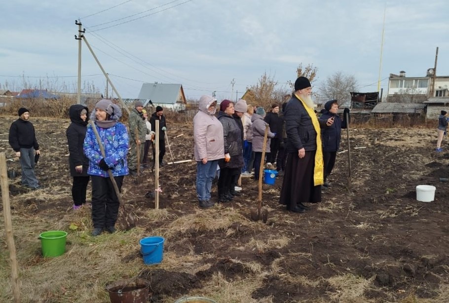 Священник вместе с педагогами, учениками и их родителями принял участие в работе. Помощь в приобретении яблонь помощь оказал заместитель председателя Курганской областной Думы Марат Исламов.