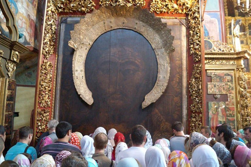 Именно там находится древний образ, с которого был сделан список. Изображение на нем – огрудное; правая рука Господа Иисуса Христа поднята для благословения, в левой – раскрытое Евангелие. По преданию, икона написана в первой трети XV века преподобным Дионисием Глушицким для деревянной церкви князей Бориса и Глеба.
