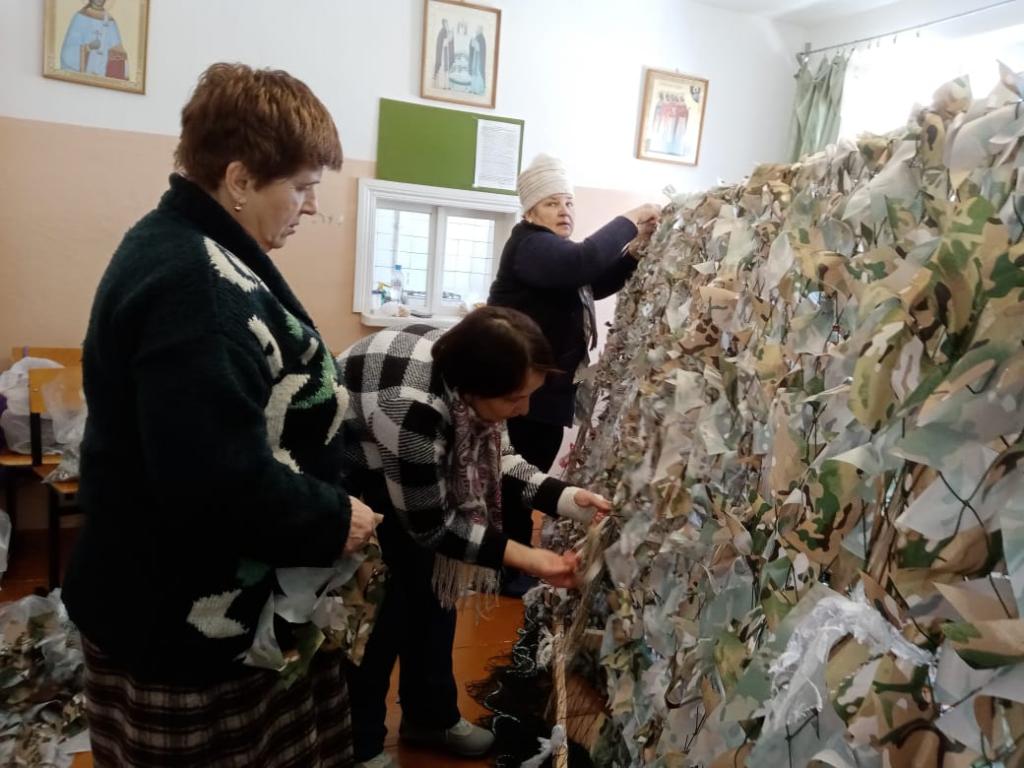 Приходы.ру 07.03.2023. В приходе во имя Всех святых г. Карачева Брянской области организовали мастерскую по плетению маскировочных сетей для нужд российских военных. За январь и февраль добровольцы сплели 58 сетей общей площадью более 2800 квадратных метров.