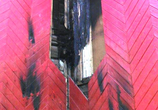 Прибыв на место возгорания и потушив огонь снаружи, пожарные проследовали внутрь храма, но признаков горения обнаружено не было: в помещении здесь лишь слегка пахло дымом. Учитывая специфику объекта – деревянные стены и возраст (храму 115 лет) – обшивку стен пожарные предпочли разобрать, чтобы убедиться, что доски не тлеют.