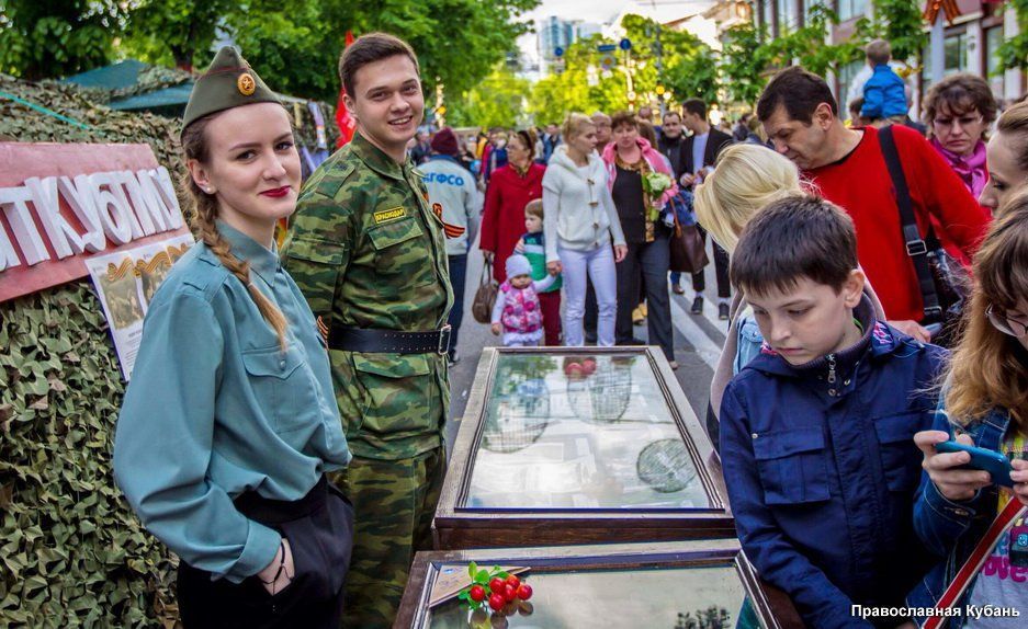 На улице Красной были устроены укрытия, поставлены палатки, под открытым небом работали выставки: ретро-машин, моделей самолетов, фронтовых писем. Поисковики Кубани представили экспонаты, найденные в ходе поисковых экспедиций.