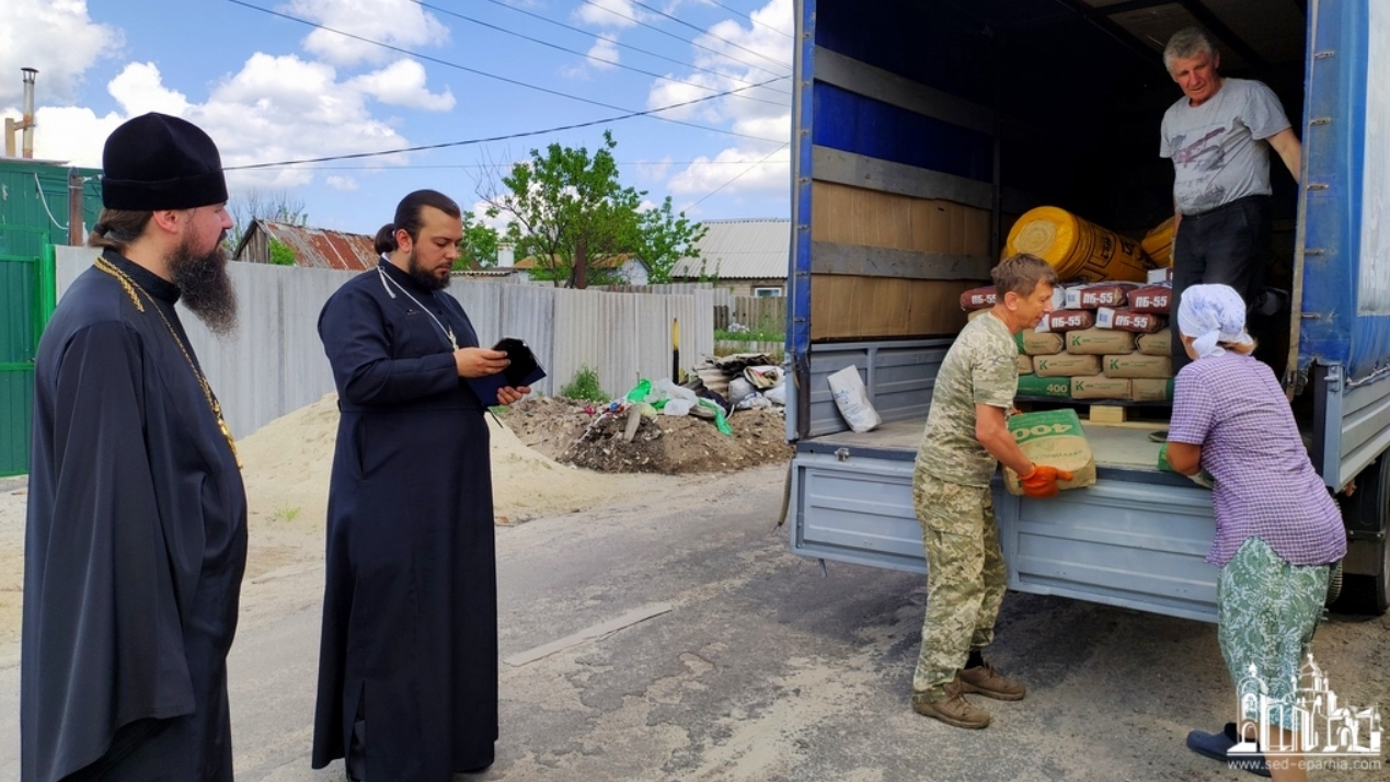 Приходы.ру. 28.05.2021. Клирики Северодонецкой епархии Украинской Православной Церкви передали в с. Сиротино Луганской области строительные материалы для восстановления жилища. Прошлой осенью из-за лесных пожаров в окрестностях Северодонецка выгорело несколько сел.